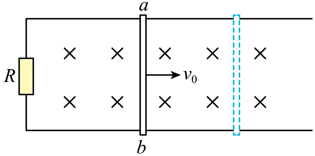 7. 如图所示,在竖直向下的匀强磁场中,水平U型导体框左端连接一阻值为R的电阻,质量为m、电阻为r的导体棒ab置于导体框上。不计导体框的电阻、导体棒与框间的摩擦。ab以水平向右的初速度v0开始运动,最终停在导体框上。在此过程中( )