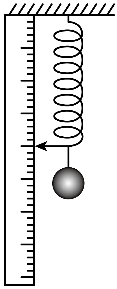 13. 某同学使用轻弹簧、直尺钢球等制作了一个“竖直加速度测量仪”。如图所示,弹簧上端固定,在弹簧旁沿弹簧长度方向固定一直尺。不挂钢球时,弹簧下端指针位于直尺20cm刻度处;下端悬挂钢球,静止时指针位于直尺40cm刻度处。将直尺不同刻度对应的加速度标在直尺上,就可用此装置直接测量竖直方向的加速度。取竖直向上为正方向,重力加速度大小为g。下列说法正确的是()