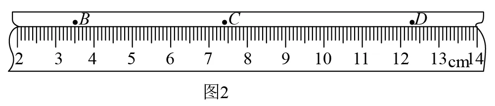 (2)数据分析。打点计时器在随物体做匀变速直线运动的纸带上打点,其中一部分如图2所示,B、C、D为纸带上标出的连续3个计数点,相邻计数点之间还有4个计时点没有标出。打点计时器接在频率为50Hz的交流电源上。则打C点时,纸带运动的速度vC=________m/s(结果保留小数点后两位)。