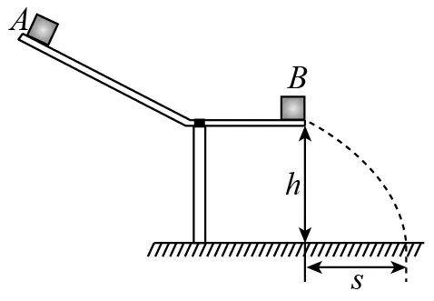 17. 如图所示,小物块A、B的质量均为m = 0.10 kg,B静止在轨道水平段的末端。A以水平速度v0与B碰撞,碰后两物块粘在一起水平抛出。抛出点距离水平地面的竖直高度为h = 0.45 m,两物块落地点距离轨道末端的水平距离为s = 0.30 m,取重力加速度g = 10 m/s2。求: