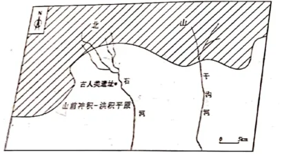 旧石器时代的古人类以采集和狩猎(围猎)为主要谋生方式。20世纪70年代初,在我国北方某地发现一处旧石器中期古人类遗址(下图)。该遗址地处山前冲积-洪积平原区,遗址北面为岩石裸露的山地(北山)。研究表明,古人类在该遗址区生存阶段正值冰期。