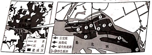 (3)说明特色板块空间利用方式对汉堡新城发展作用。