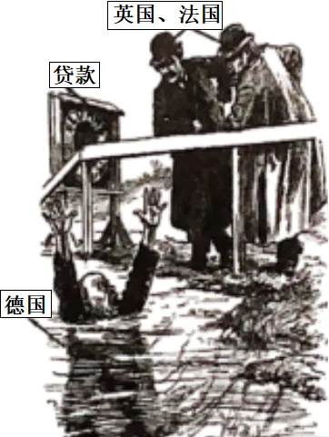 15. 下图是一幅关于一战后国际关系的漫画,发表于1921年12月。画中德国被描绘成水中求救者的形象。该漫画反映当时( )