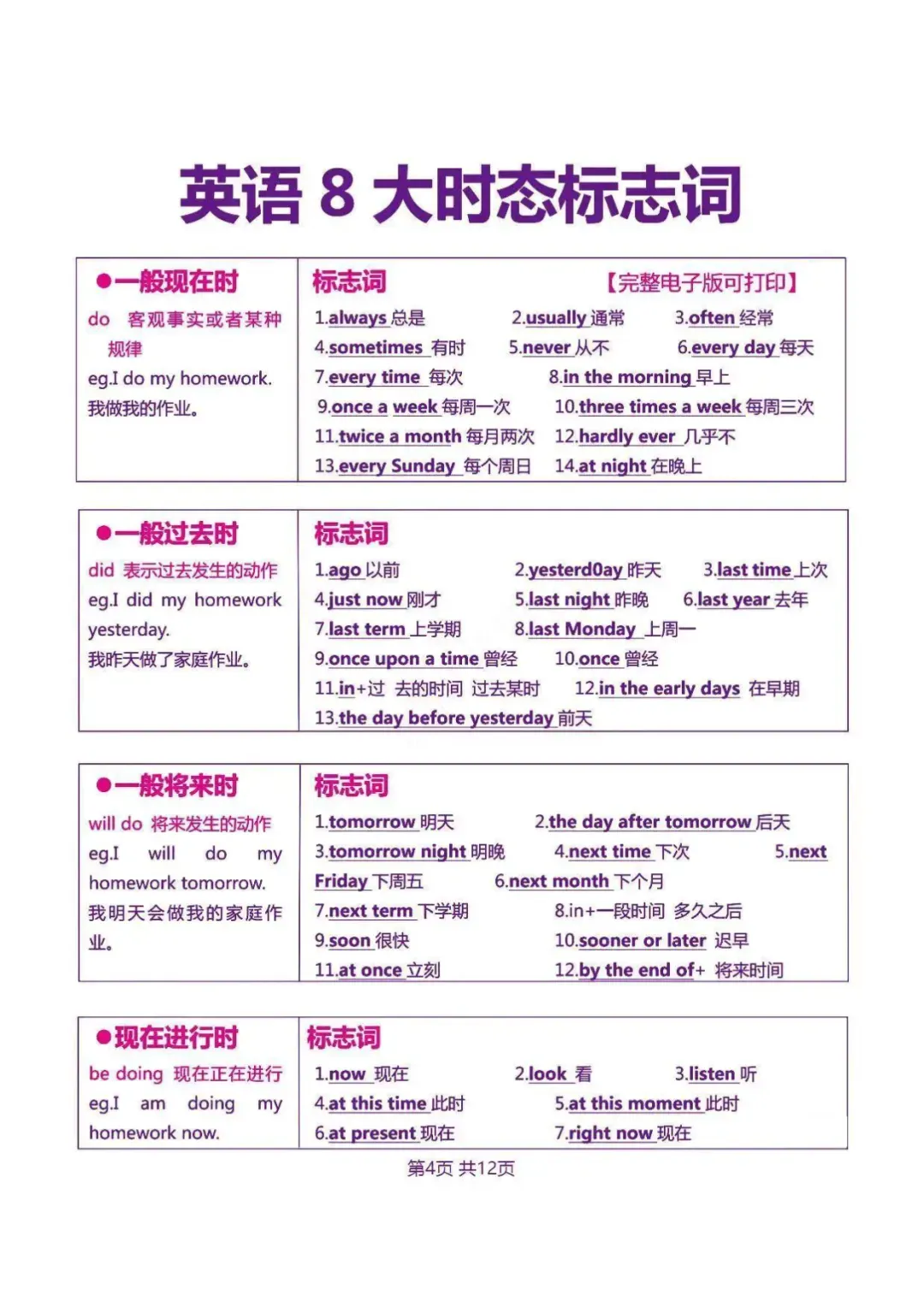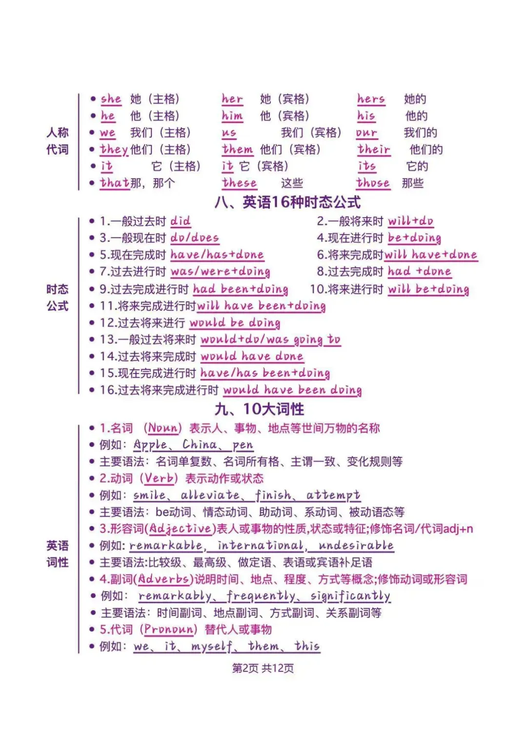 >12页纸吃透整个小学英语语法体系,可免费下载打印