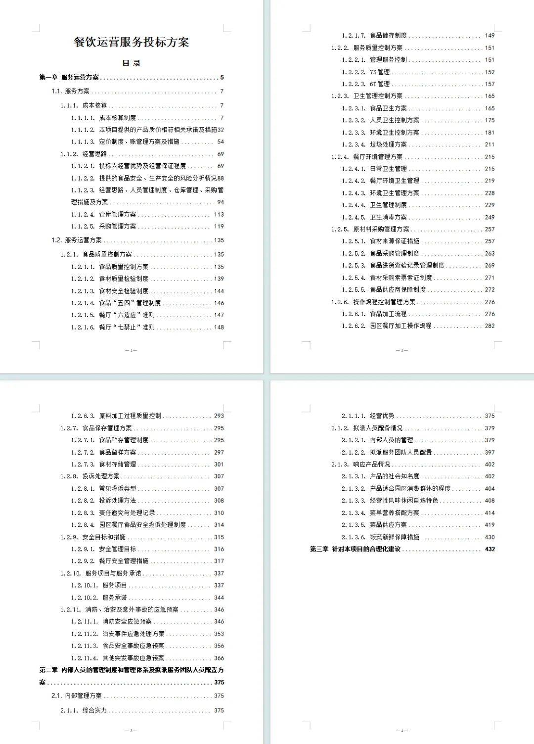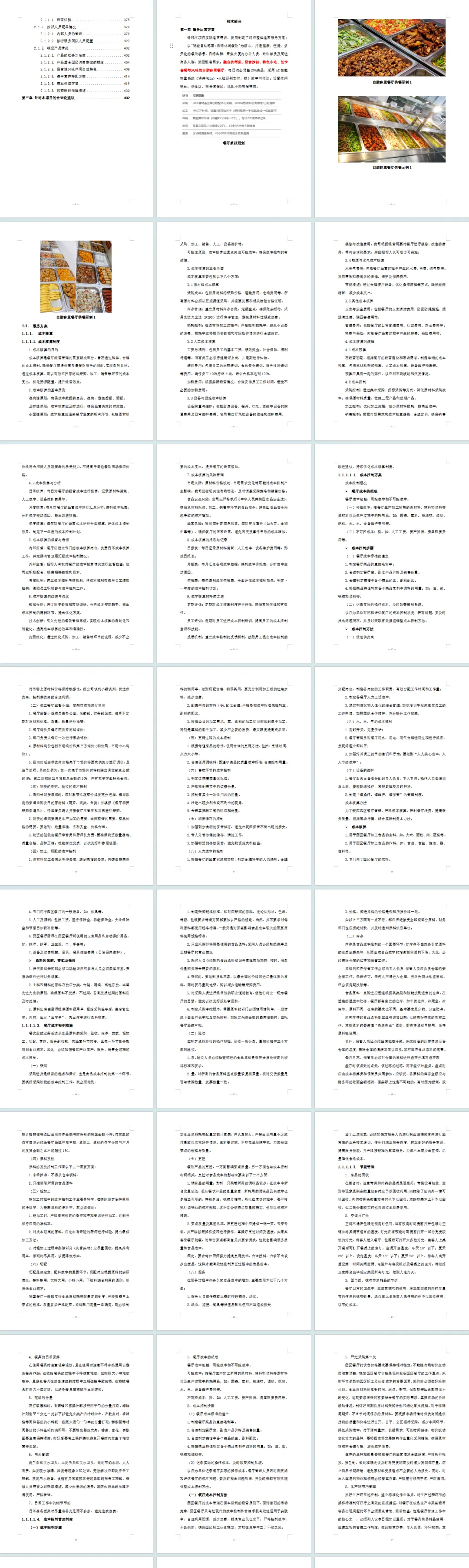 这份标书是一份结构完整、专业详实、针对性极强的餐饮运营投标方案,排版规范清晰,完全契合餐饮服务投标的核心诉求,值得重点参考借鉴。 一、排版布局:层级分明,实用性与可读性兼顾 1. 结构框架完整,逻辑闭环 采用 “核心方案 + 支撑体系 + 合理化建议” 的经典架构,覆盖餐饮运营全流程(成本核算、食品安全、服务质量、人员管理、应急处置等),每个章节下分小节、子项层层拆解,从宏观定位到微观操作无缝衔接。 目录标注详细页码和层级关系(如 “1.1.1.1 成本核算制度”),方便评标人员快速定位关键内容;技术部分单独划分,聚焦实操落地,模块边界清晰。 2. 格式标准化,重点突出 统一使用分级标题、有序 / 无序列表呈现要点,关键制度(如 “食品五四管理制度”“6T 管理法”)用小标题强调,核心数据(如菜品重量、消毒时间)以表格形式呈现,避免大段文字堆砌。 图文结合:插入流程图(如餐具洗消流程)、示意图(蔬菜农残检测流程)、表格(食材验收标准表、留样记录表),直观展示方案细节,降低理解成本。 3. 细节规整,适配落地 附件与正文呼应:包含各类台账模板(如食品留样记录表、消毒登记表)、验收标准表、投诉处理单等,可直接落地使用,无需额外补充。 文字格式统一,无杂乱排版,关键制度和操作流程单独成节,方便后期执行时查阅引用。 |