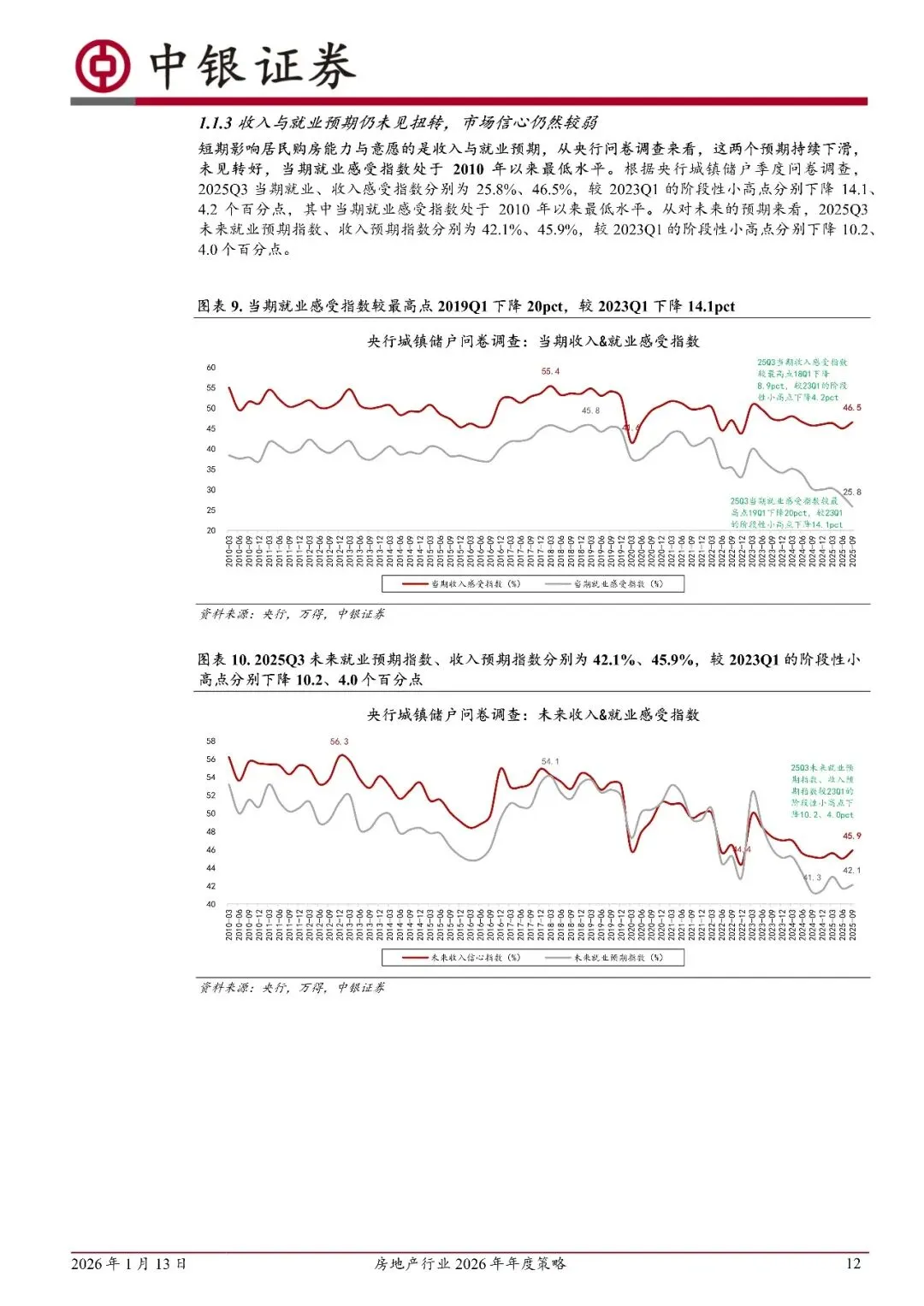 3)短期影响居民购房能力与意愿的收入与就业预期仍未见扭转。25Q3 未来就业预期指数、收入预期指数较23Q1 阶段性小高点下降 10.2、4.0pct。
