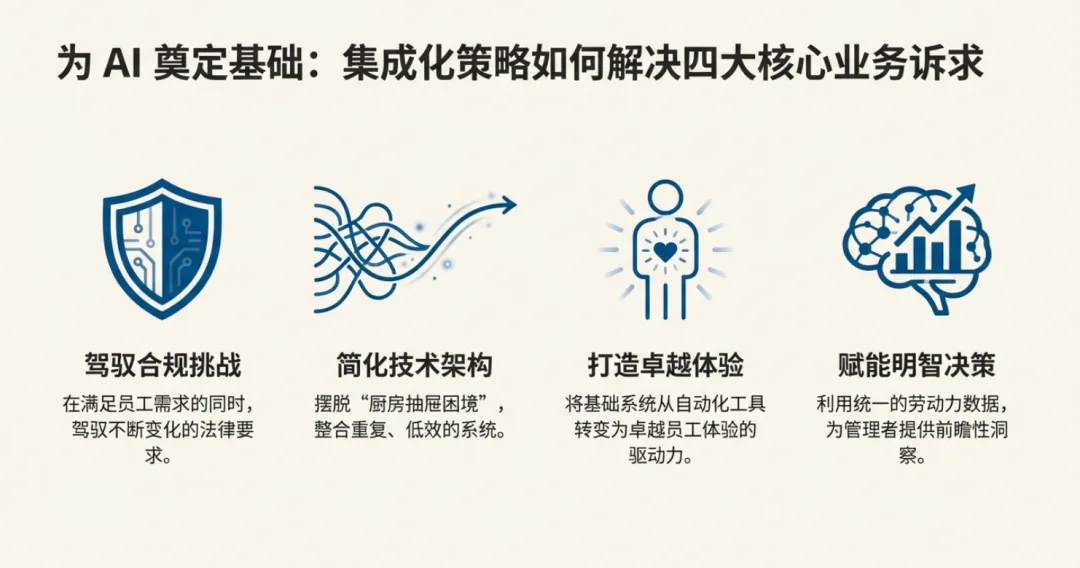 深度整合AI并推动员工采用,可将基础HR系统转为前瞻性战略平台,提升效率、体验等。