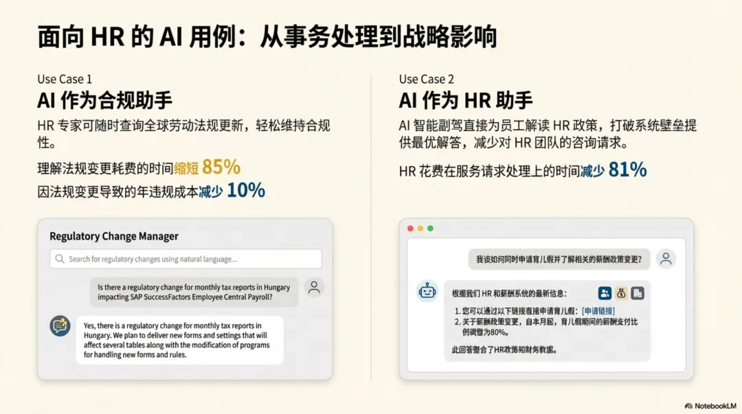 面向HR团队,AI承担合规分析与政策解答任务,将HR从事务性工作中解放,转向更具战略性的角色。