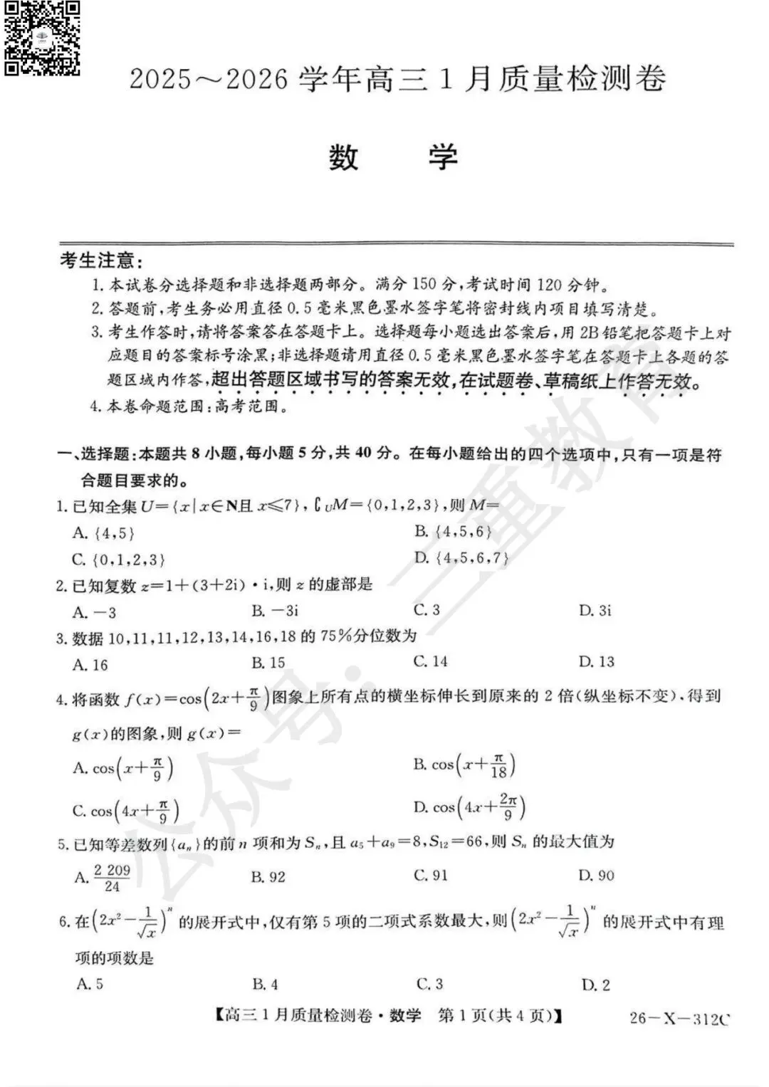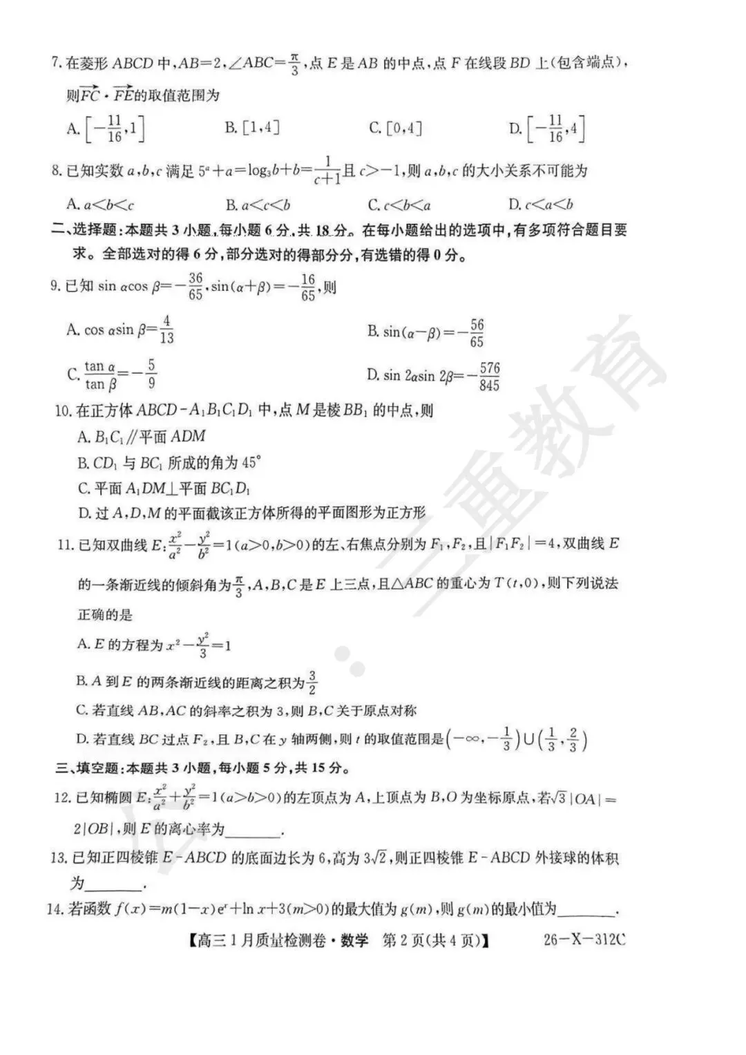 2025-2026学年 卓越联盟山西高三1月质量检测(26.1.14-15)点击下载打印2025-2026学年 山西高三1月四省联考(1.13--1.14)点击下载打印2025-2026学年 高三年级第一学期八省联考(12.24-12.25)点击下载打印