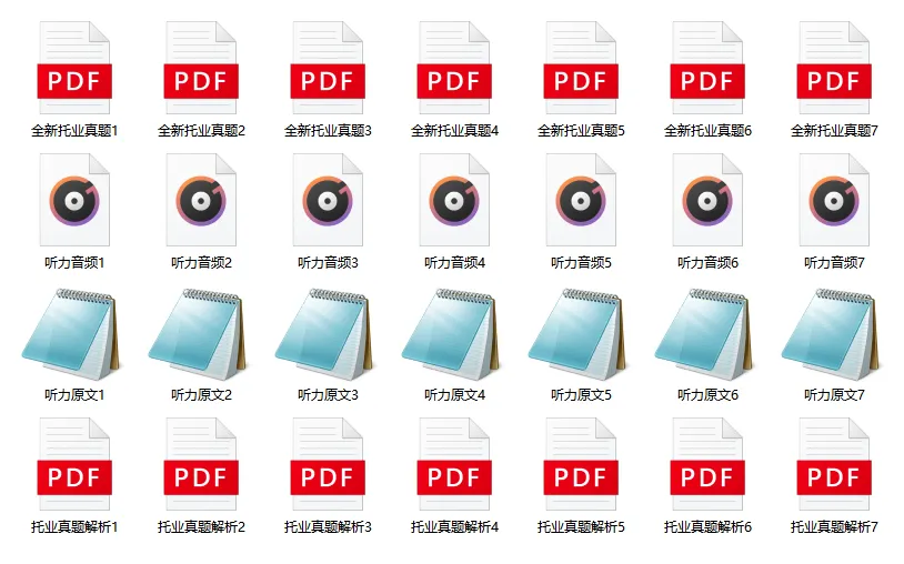 今天给大家带来的福利是:7套托业试题!配套听力音频+听力原文,更有讲师自意解析可供参考!