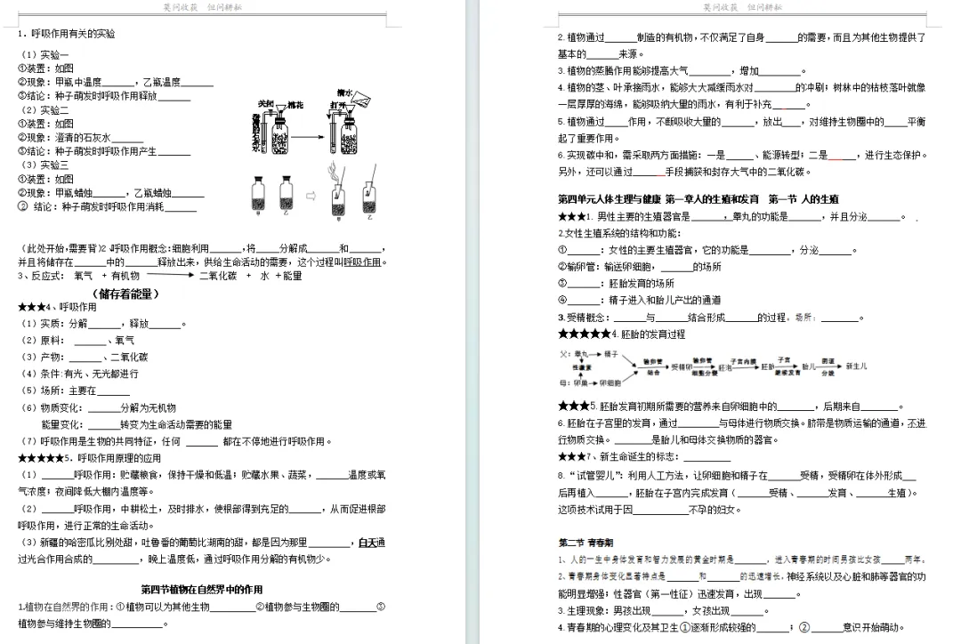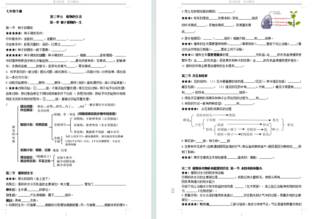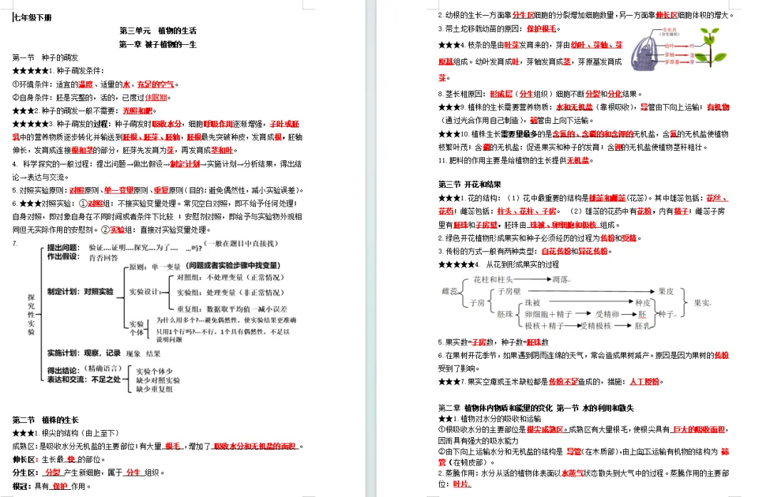 七下生物全册课本笔记和重要的概念梳理