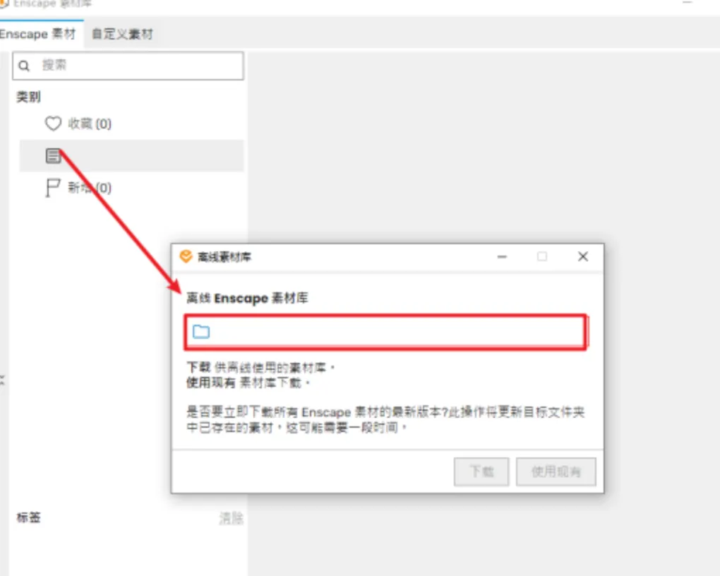 24.选中【Enscape4.1离线素材库】文件夹,再点击选择文件夹