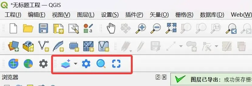 2、安装完成后会在QGIS的工具条上出现天地图插件的工具条。