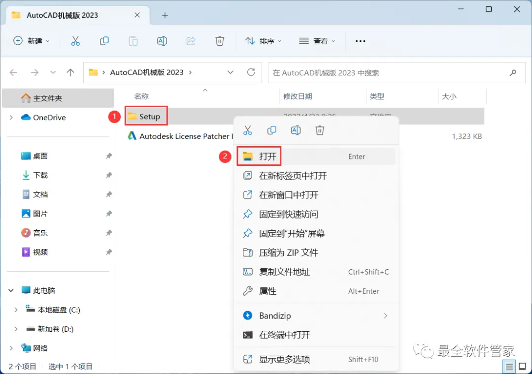 1、下载AutoCAD机械版 2023软件安装包到电脑上,右键选择【解压到AutoCAD机械版 2023\】