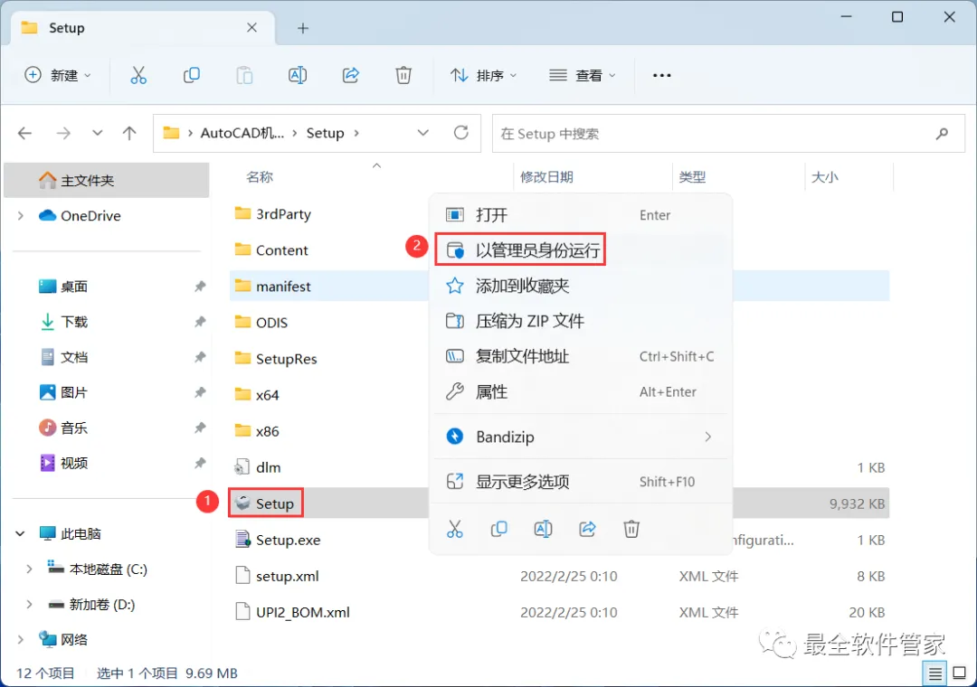 4、找到【Setup】应用程序,右键选择【以管理员身份运行】它