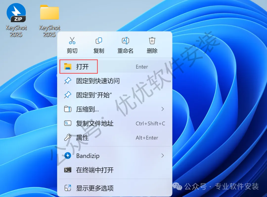 21、回到桌面,右键桌面上的【KeyShot 2025软件图标】,点击【打开】