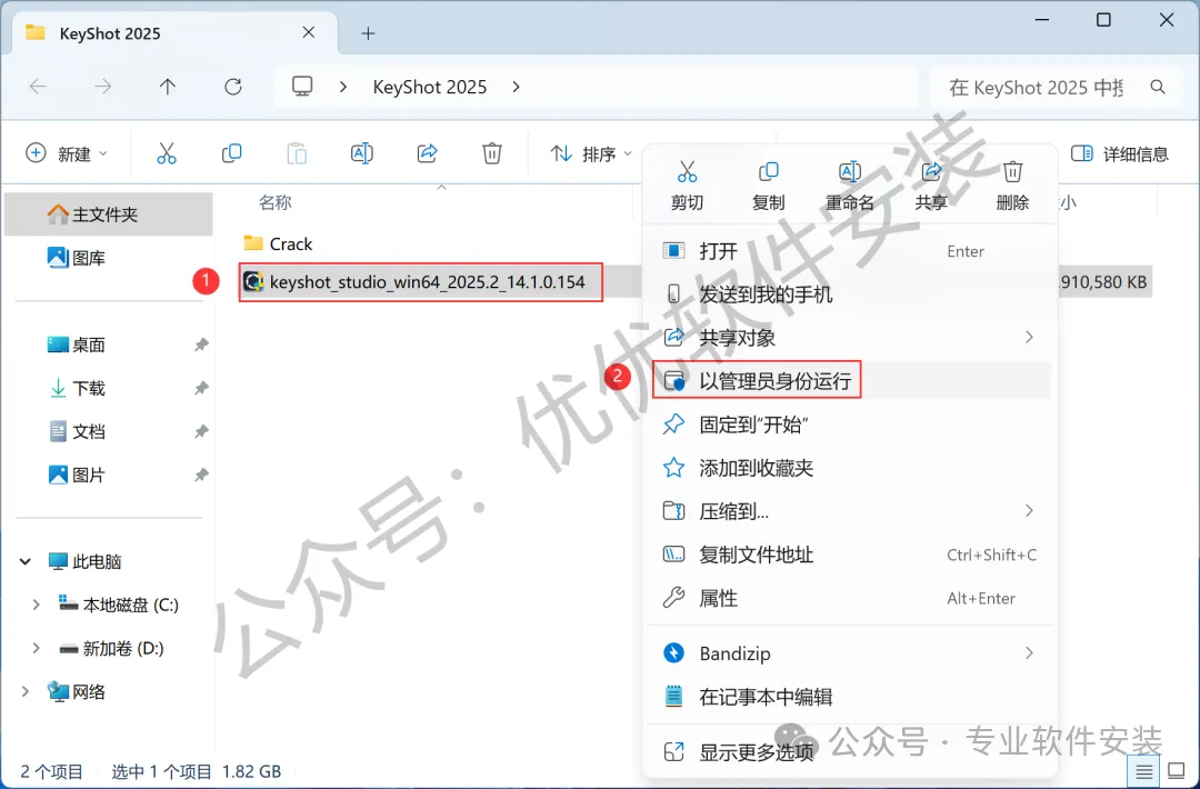 1、下载KeyShot 2025软件安装包到电脑上,右键选择【解压到KeyShot 2025\】2、右键【打开】解压后的文件夹