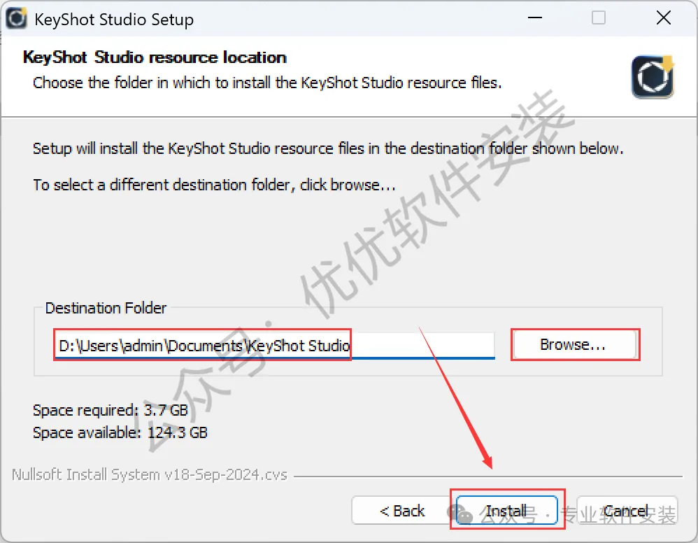 8、可自定义更改软件安装位置,这里小编选择安装在D盘;再点击【Install】