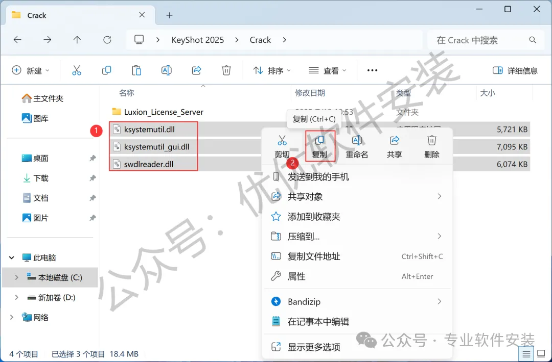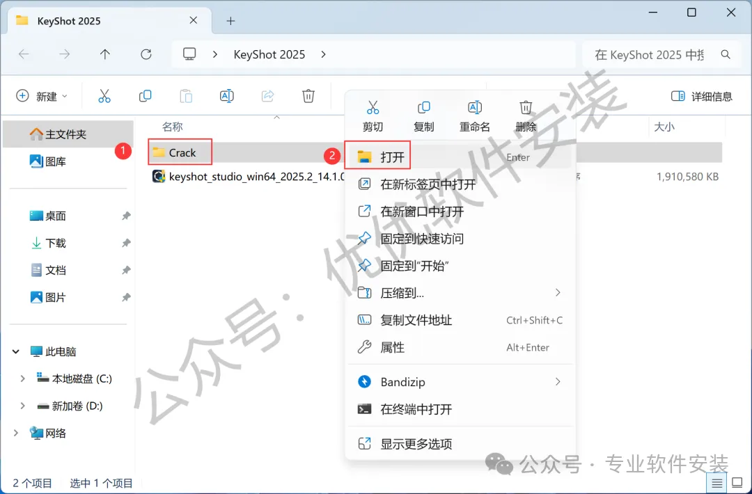 11、回到KeyShot 2025文件夹,找到【Crack】文件夹,右键【打开】它