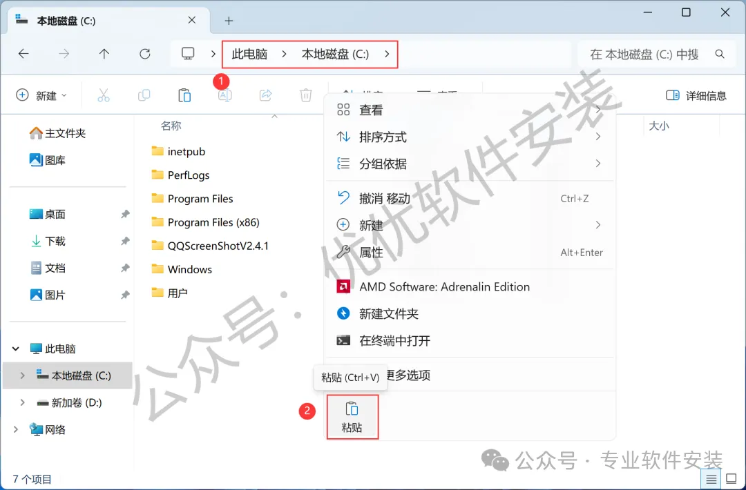13、打开【本地磁盘C】,右键文件夹的空白处,点击【粘贴按钮】