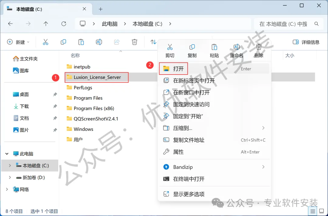 14、找到粘贴的【Luxion_License_Server】文件夹,右键【打开】它