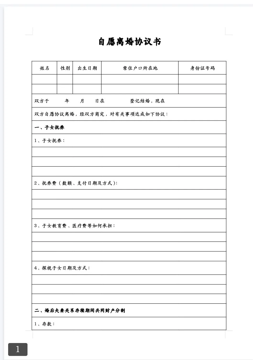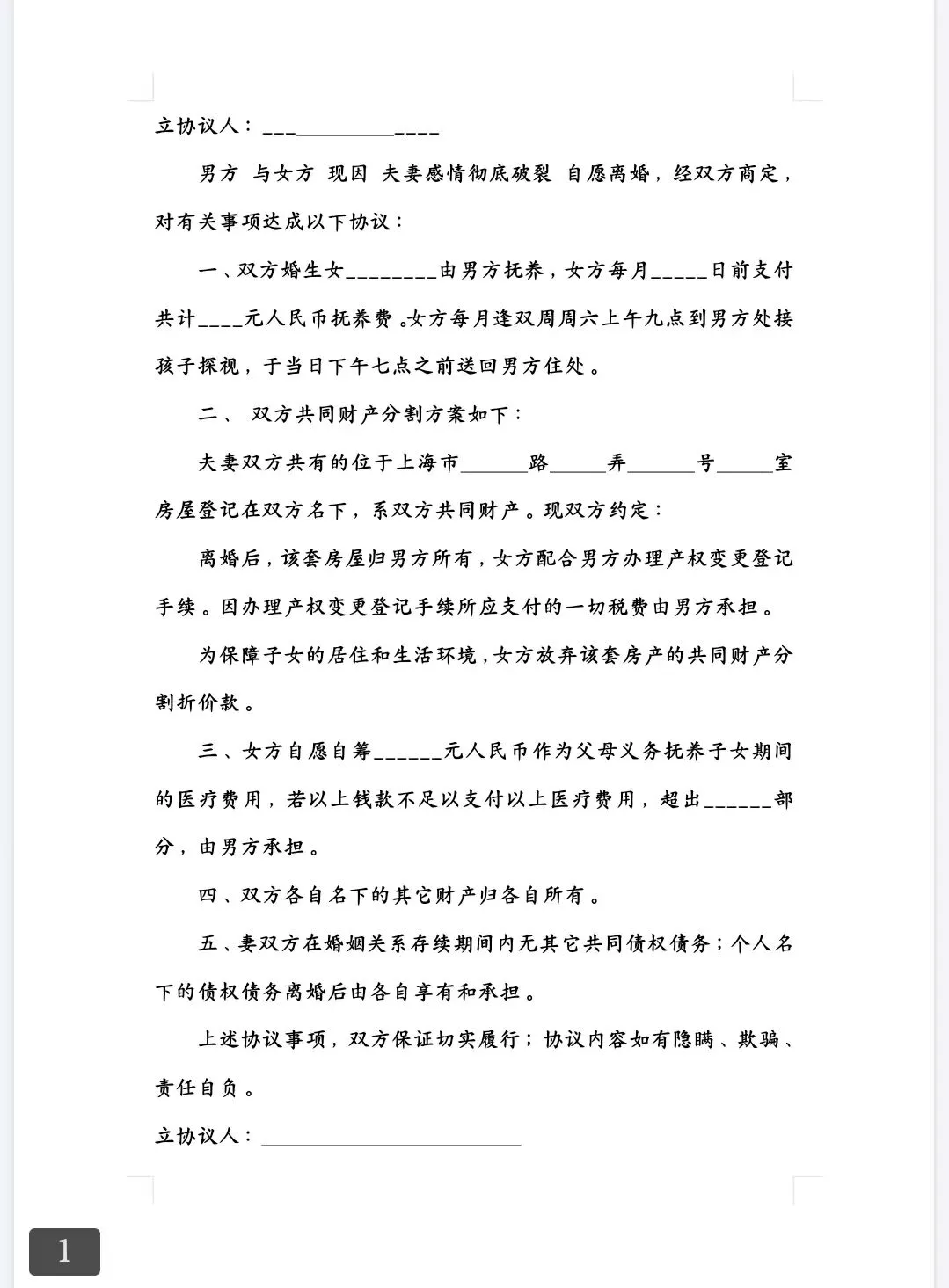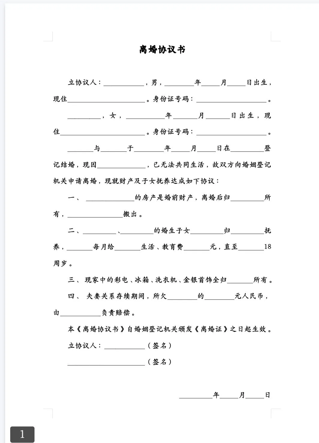 本 文 内 容 分 享【离婚协议书】