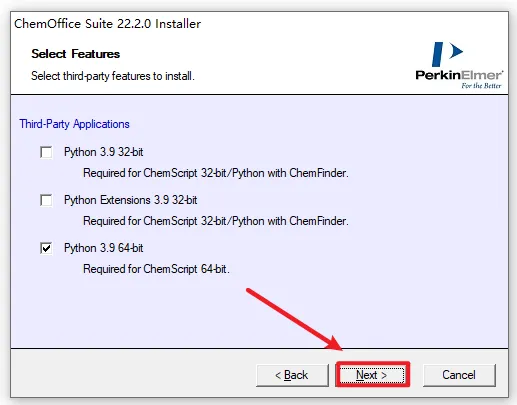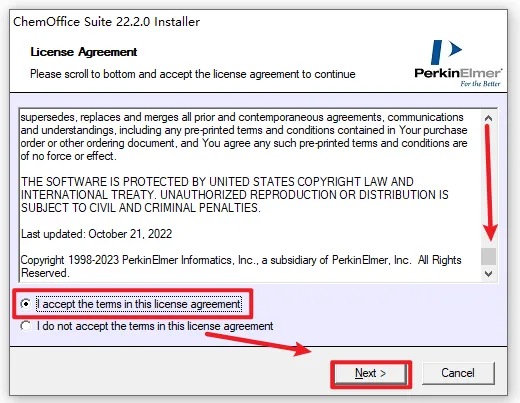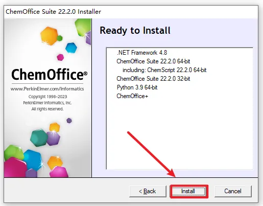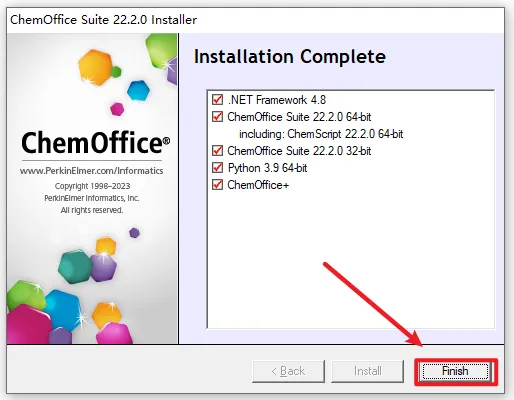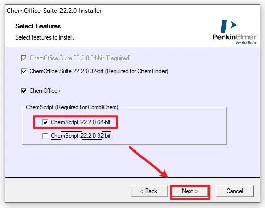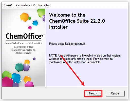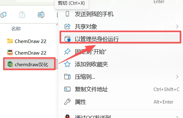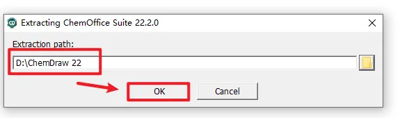 1、右键选择”解压到 ChemDraw 22“ ![]() 2、打开解压好的文件夹,选中“CD.22”,右键“以管理员身份运行” ![]() 3、选择软件的提取路径,然后点击“OK” ![]() 4、直接点击“Quit” ![]() 5、点击“确定” ![]() 6、点击“Next” ![]() 7、下拉进度条,选择“I accept ....”,点击“Next” ![]() 8、更改安装路径,C改成D,点击“Next” ![]() 9、根据电脑系统选择32/64位,点击“Next” ![]() 10、点击“Next” ![]() 11、点击“Install” ![]() 12、点击“Finish” ![]() 13、软件正在安装,请耐心等待