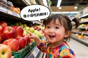 🍽️ 吃饭时,她会指着苹果说 “Yummy apple!”