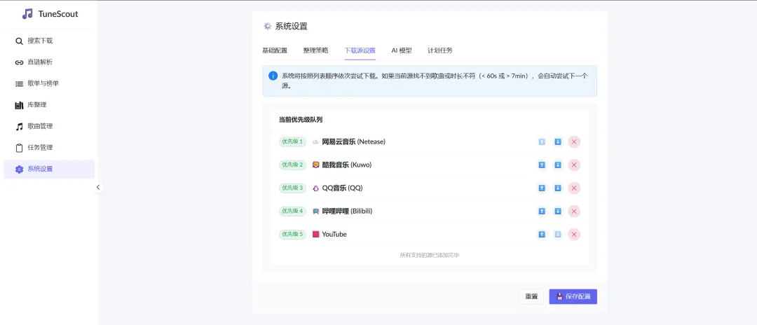 它内置了对 网易云、QQ音乐、酷我、B站、YouTube 的搜索支持。你不是在某个平台找歌,而是对它下一个指令:“找到这首歌最好的那个版本”。