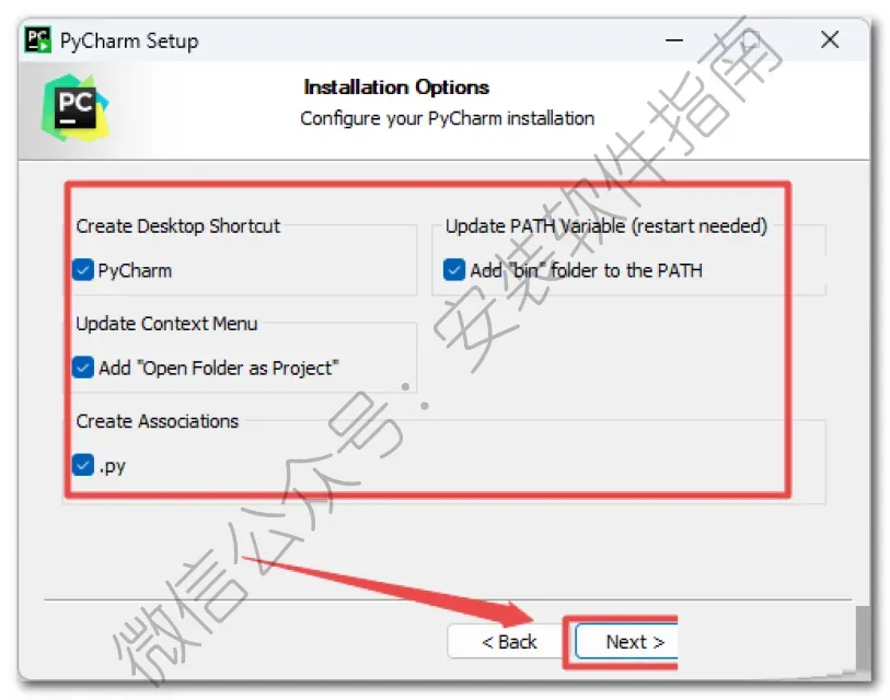 5、勾选项目,然后点Next