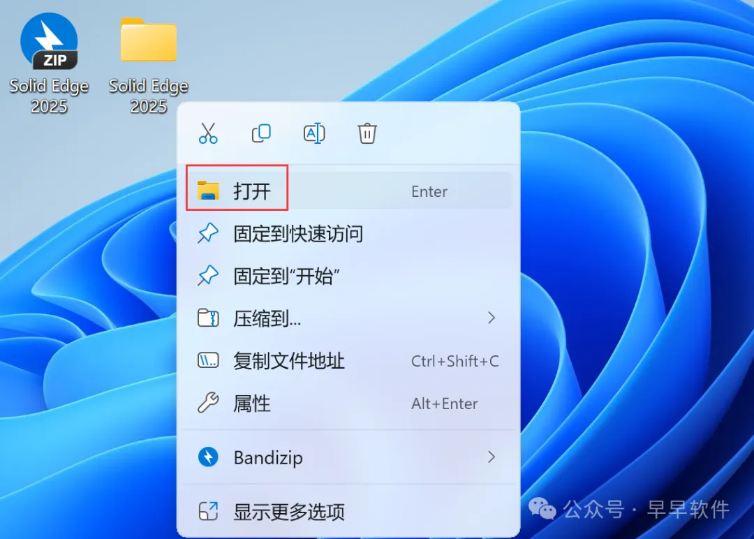20、回到桌面,右键桌面上的【Solid Edge 2025软件图标】,点击【打开】