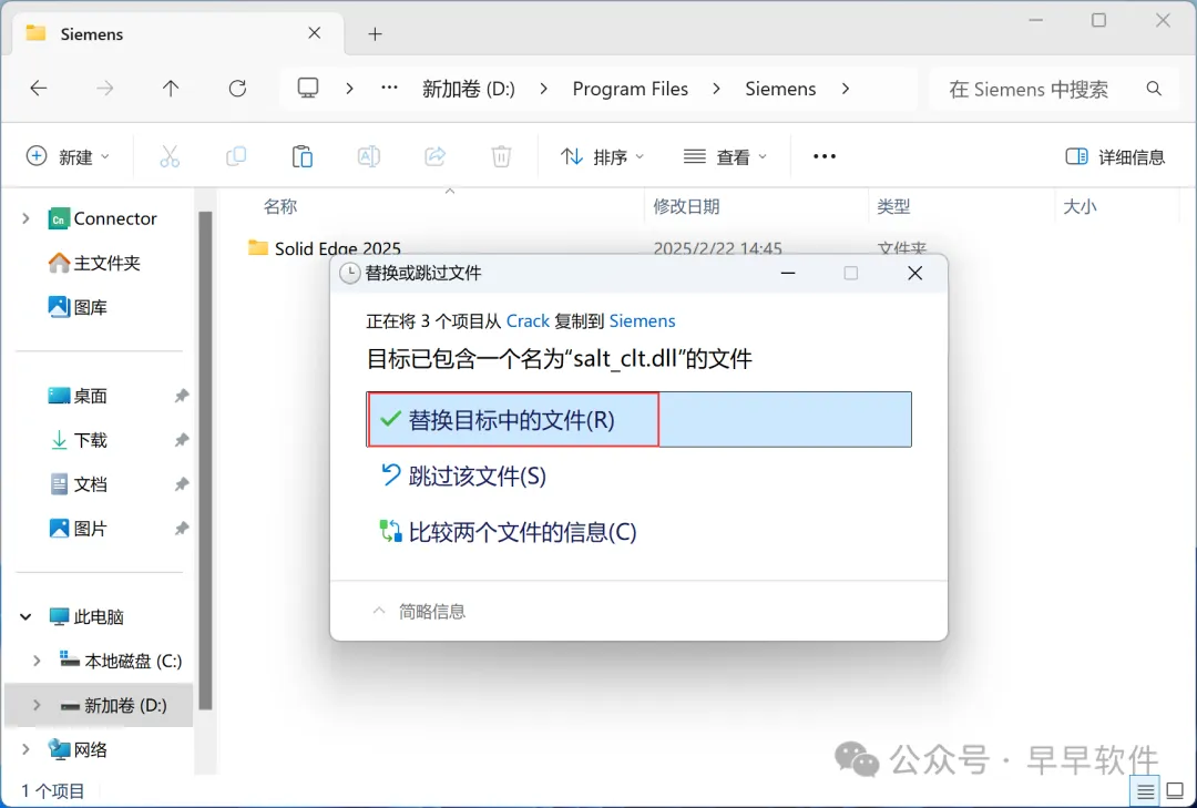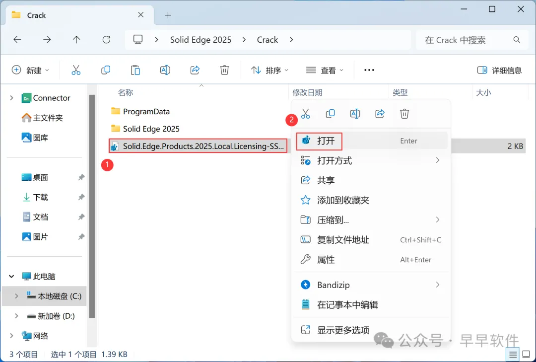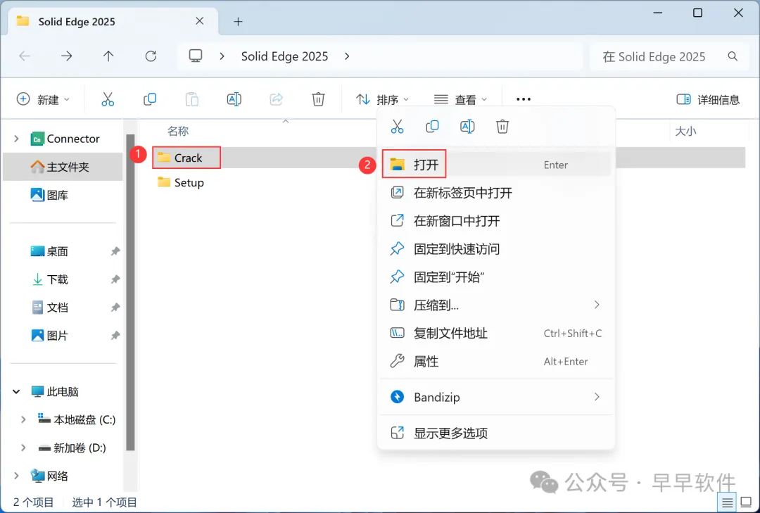 9、回到Solid Edge 2025文件夹,找到【Crack】文件夹,右键【打开】它