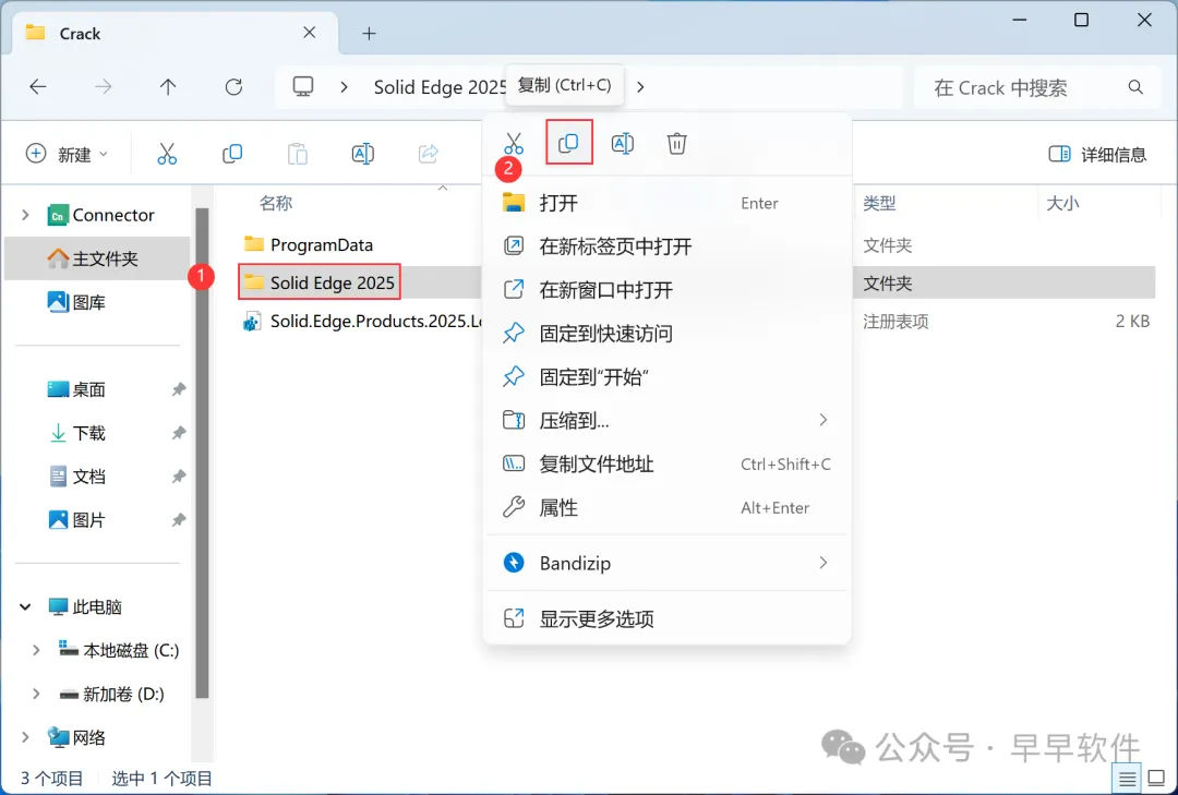 10、找到【Solid Edge 2025】文件夹,再右键点击【复制按钮】