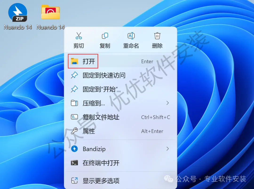 22、回到桌面,右键桌面上的【Nuendo 14软件图标】,点击【打开】
