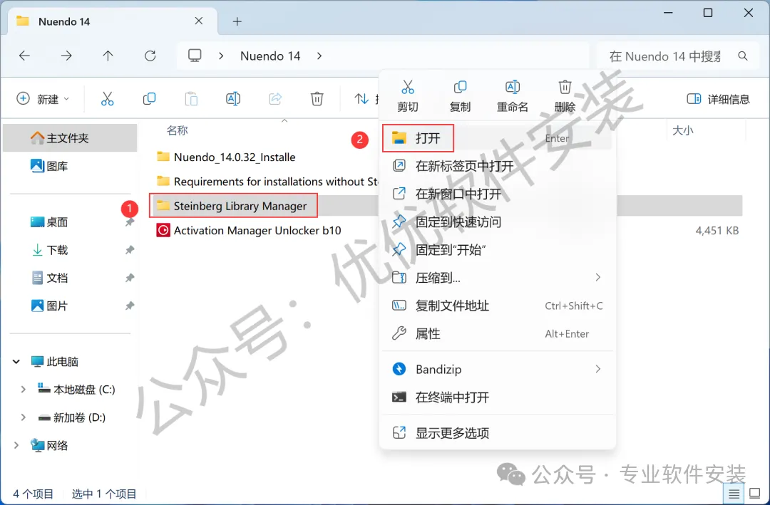 1、下载Nuendo 14软件安装包到电脑上,右键选择【解压到Nuendo 14\】
