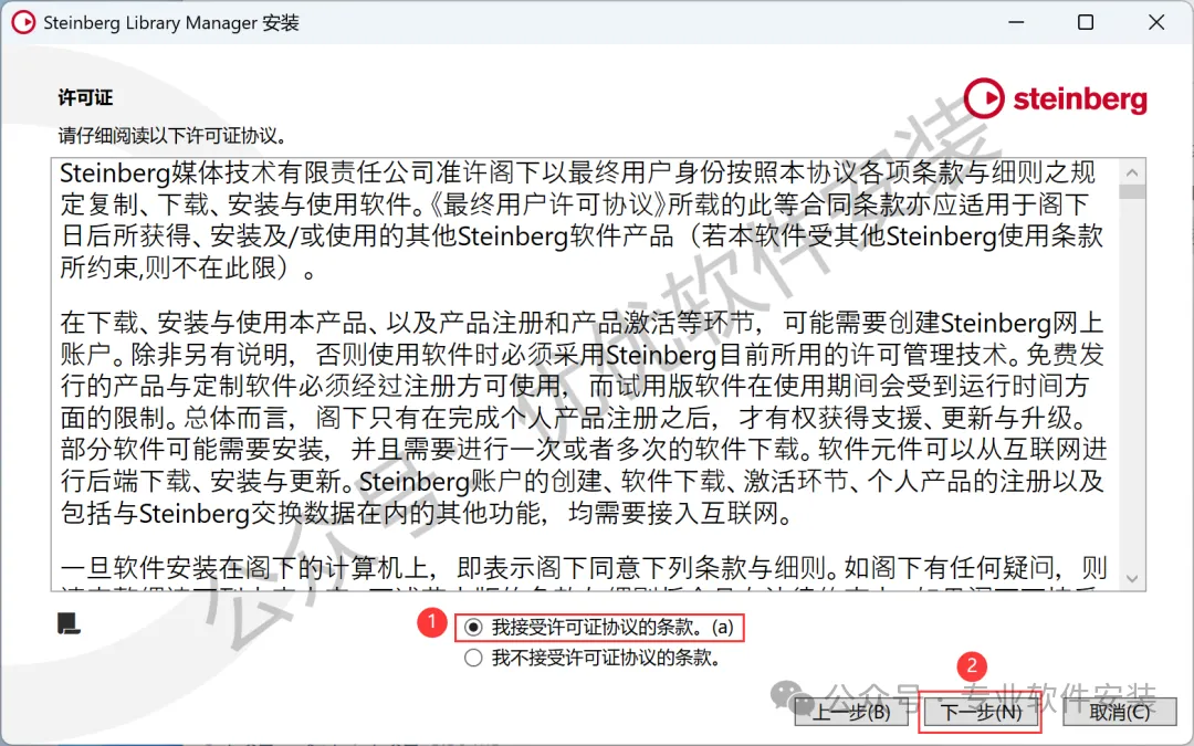 13、勾选【我接受】,再点击【下一步】