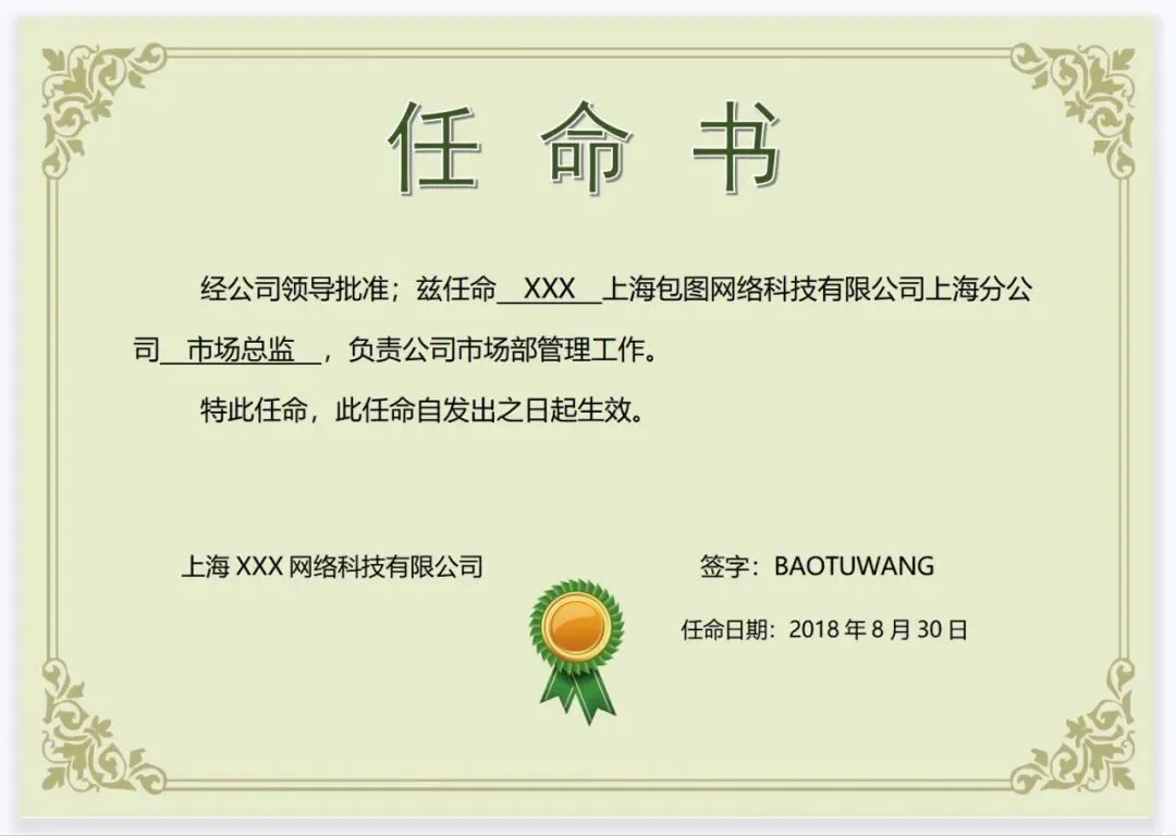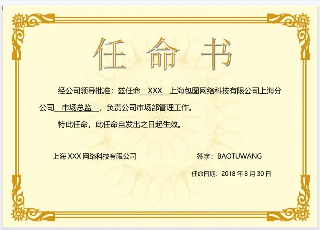 本文内容分享【任命书聘书模板】