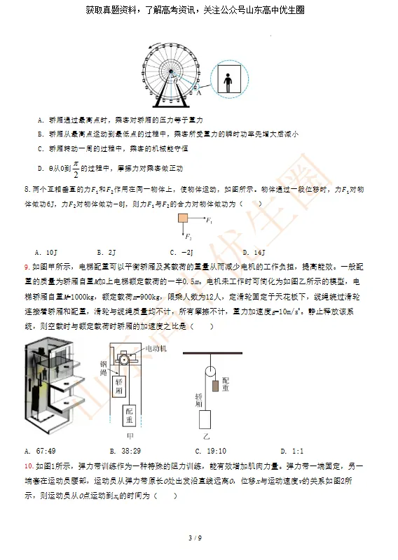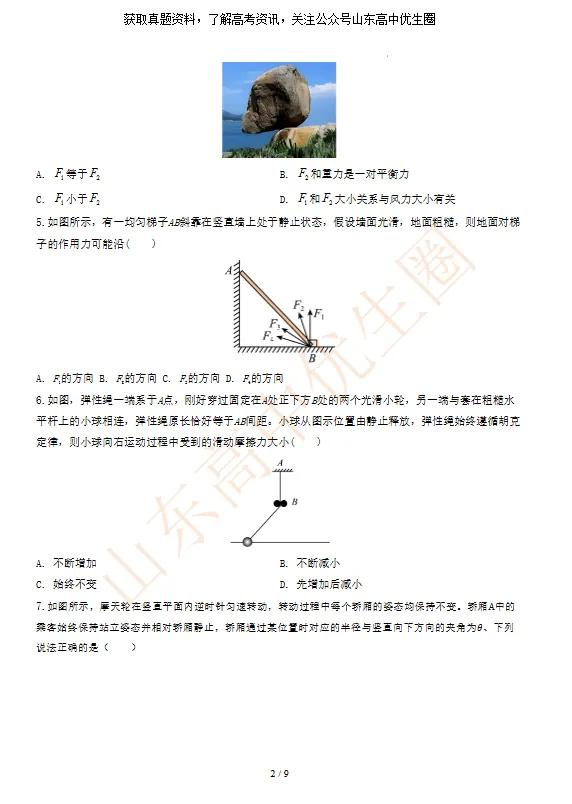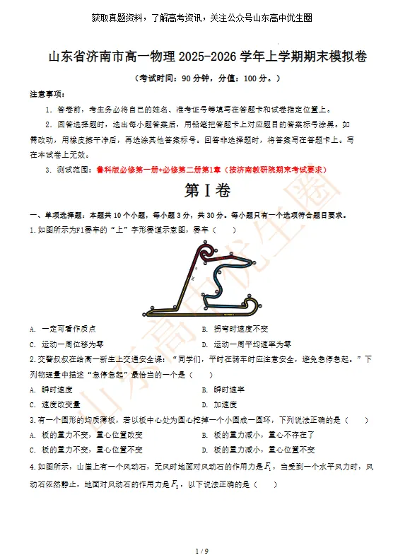 >【免费下载】25-26学年济南市高一物理期末模拟试题,可打印
