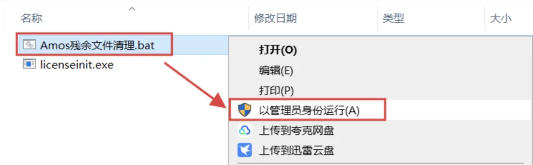 选中:Amos残余文件清理,右键选择【以管理员身份运行】。
