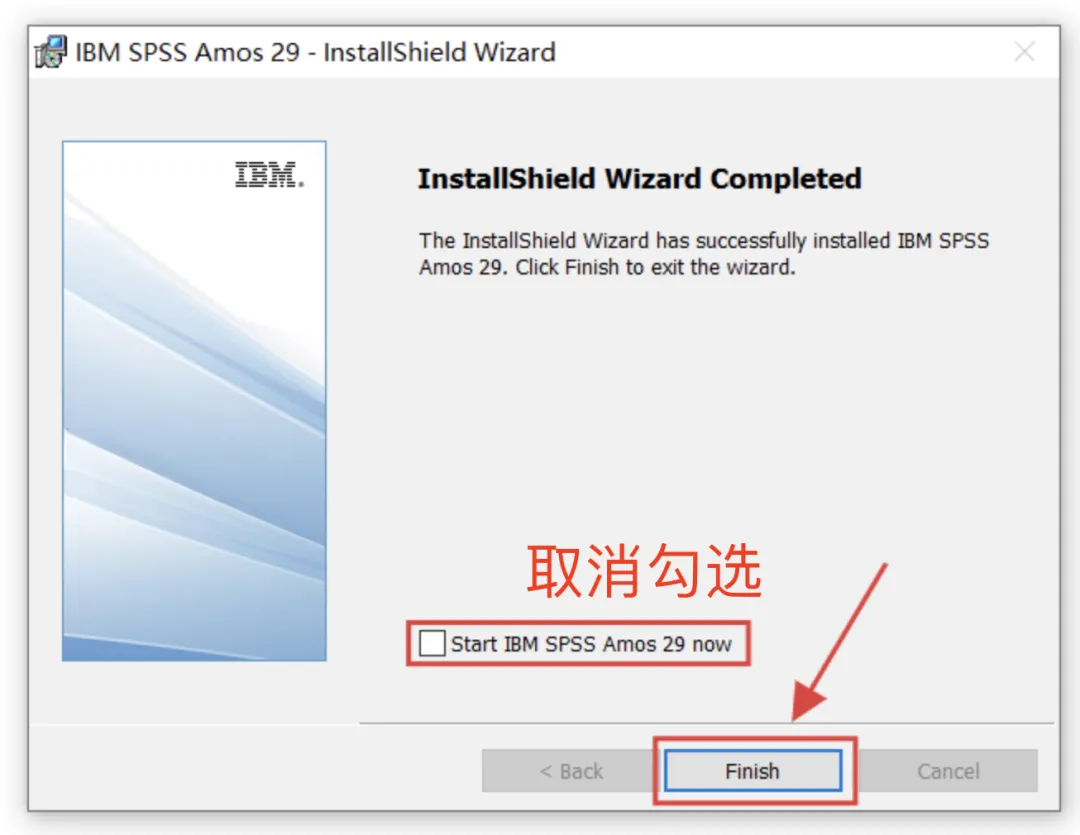 8、安装完成后,取消勾选【Start IBM APSS...】,然后点击【Finish】。