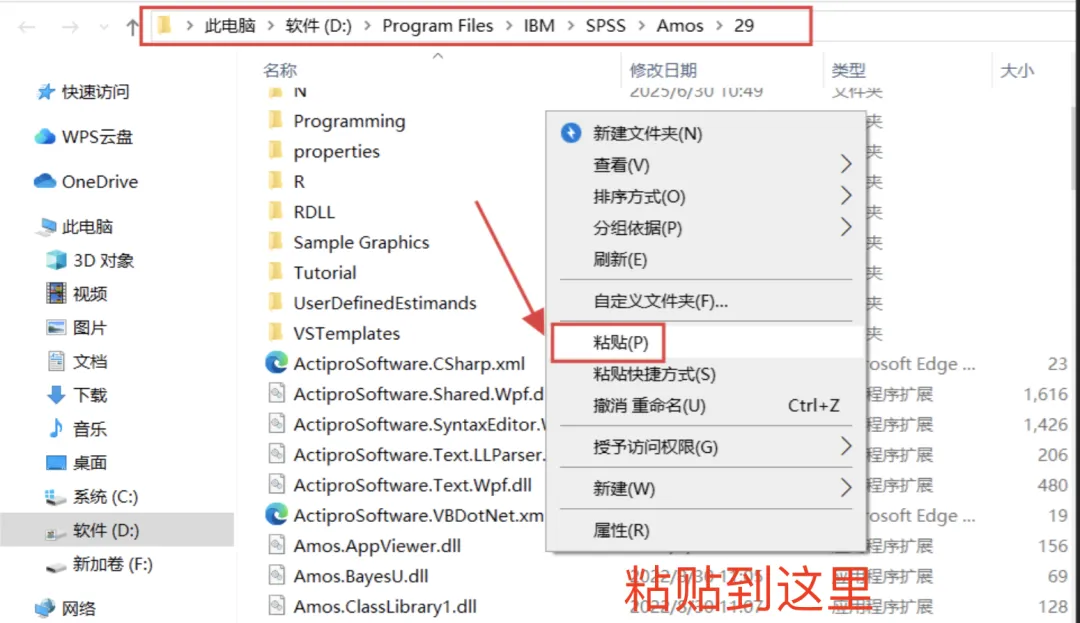 3、在打开的文件夹空白处右键,将之前复制的Crack文件夹内所有文件【粘贴】进来,出现提示时选择:替换目标中的文件。