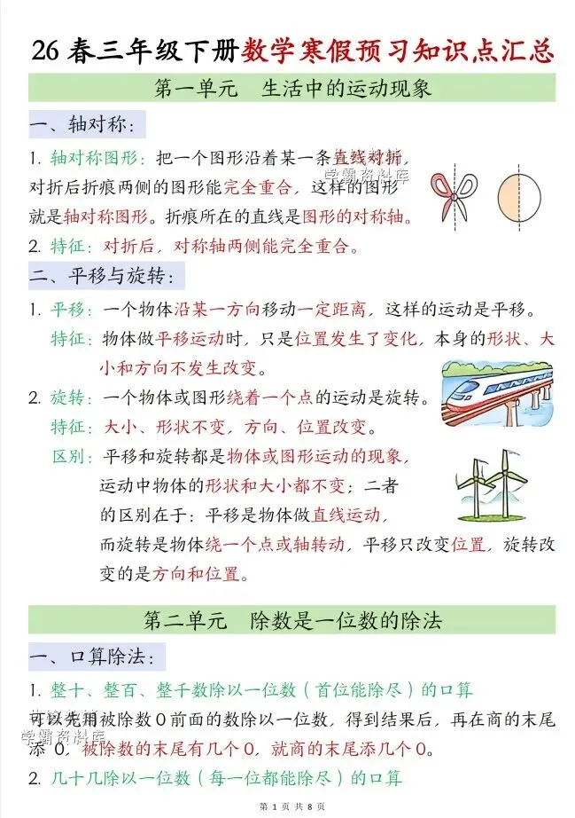 今天给大家整理了26春新数学人教三年级下册寒假知识点汇总(完整版),转发给朋友或班级群,受益更多人,帮助孩子学习!