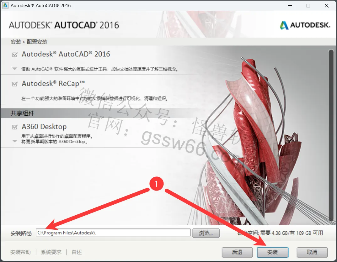 11,无须更改安装位置,点击“安装”,快速更改安装位置到D盘,把安装路径首字母C改为D即可(安装路径不要出现中文),点击“安装”。本例安装在D盘。