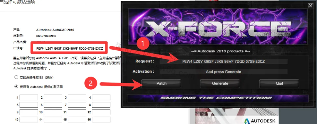 24,把CAD申请号复制并粘贴到注册机Request处,点击“Patch”
