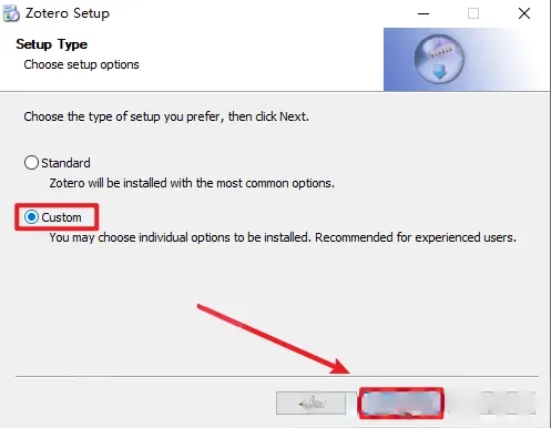 4.先勾选【Custom】,然后点击【Next】。