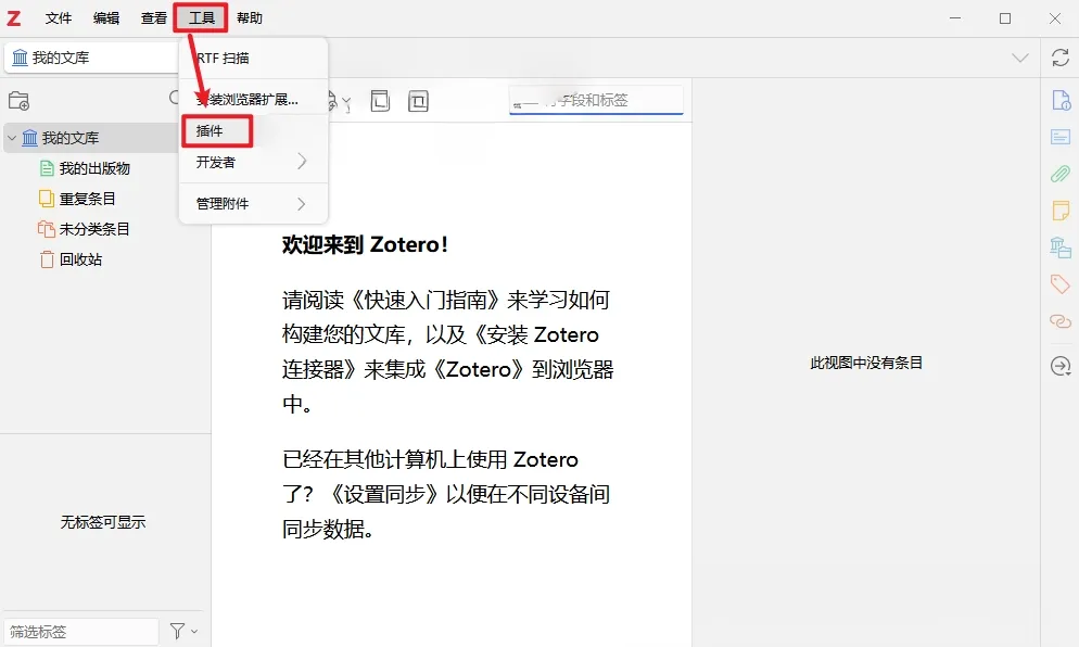 1.进入软件界面,点击上方菜单栏【工具】展开点击【插件】。
