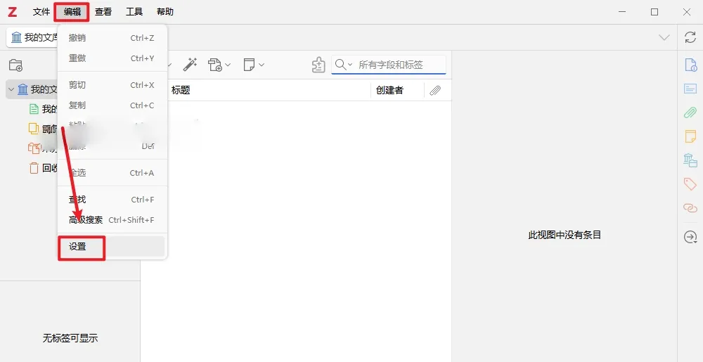 7.点击上方菜单栏【编辑】展开,点击【设置】。