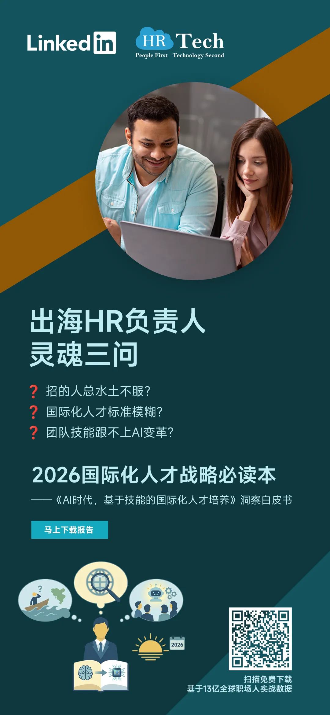 扫描图片二维码或复制链接http://hrnext.cn/YDJZT4 至浏览器打开,即可限时免费获取完整版白皮书《AI时代基于技能的国际化人才培养》