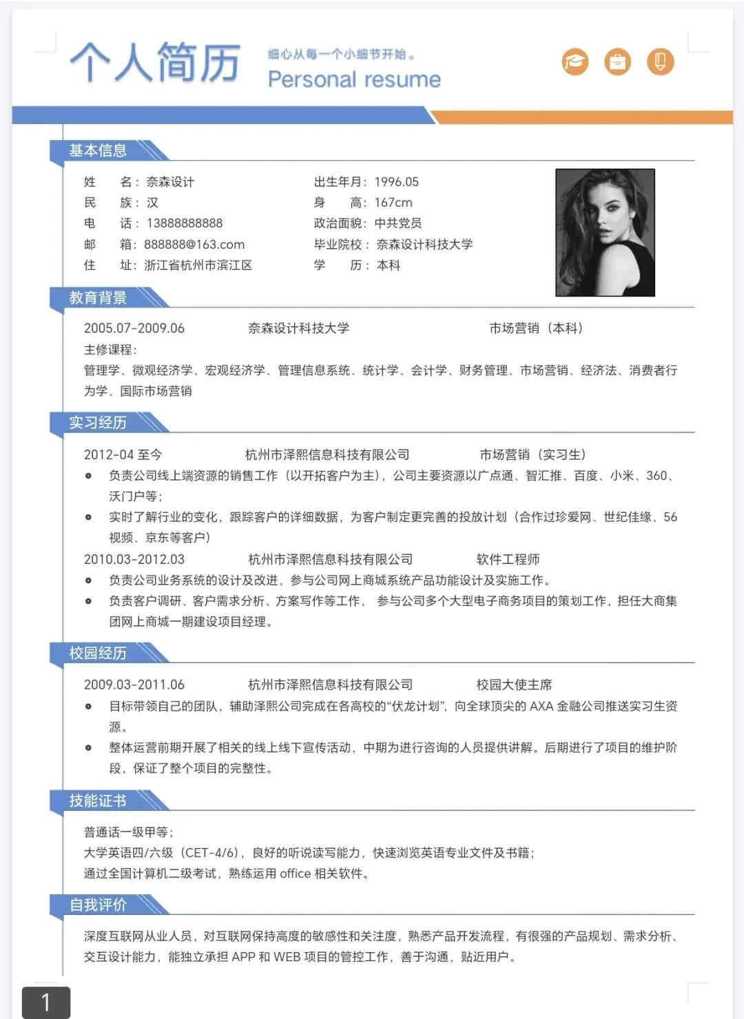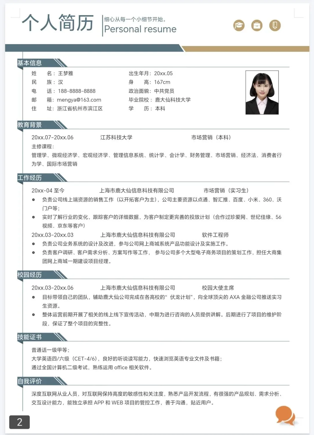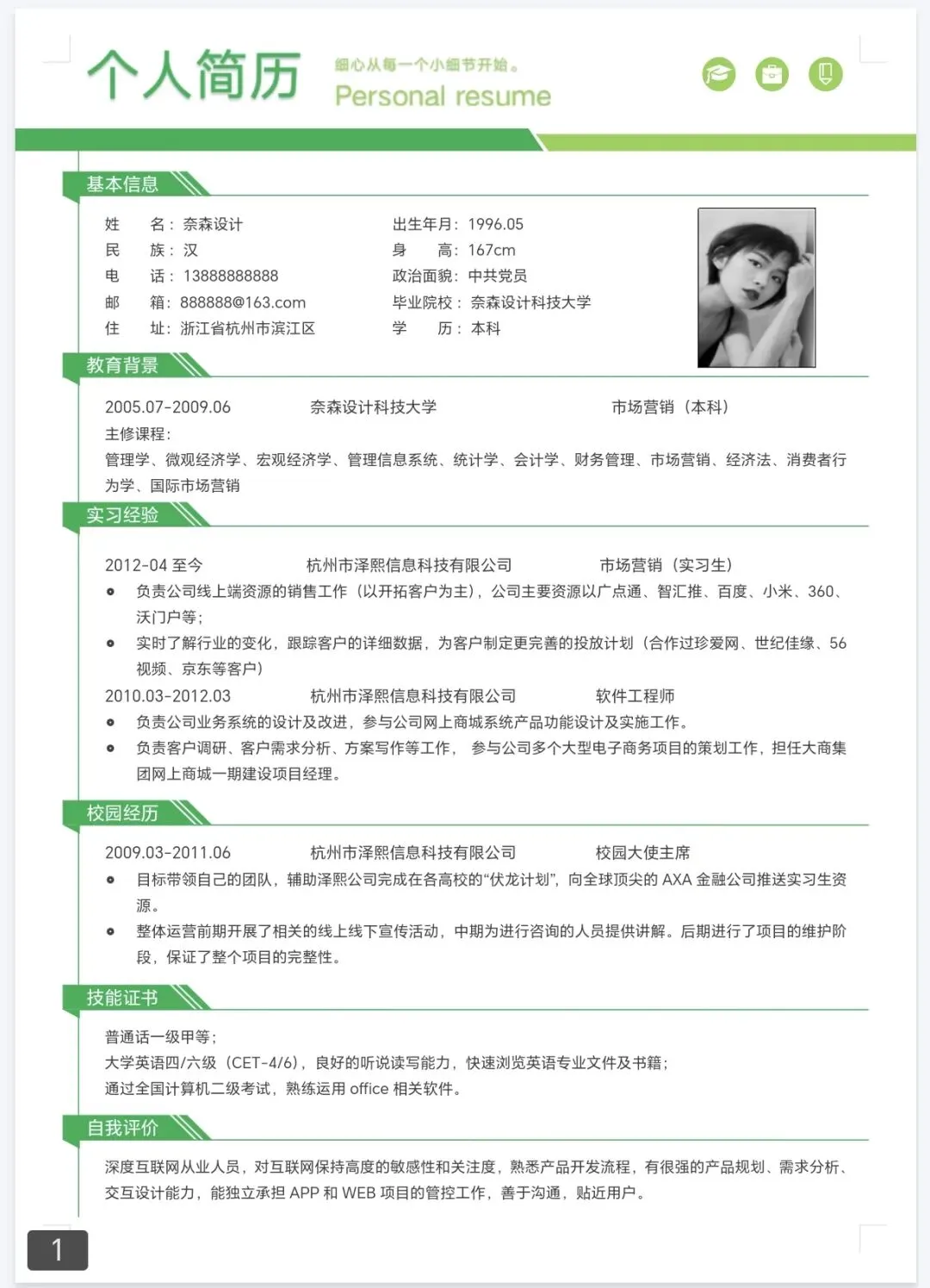 本文内容分享【大学生个人简历模板】