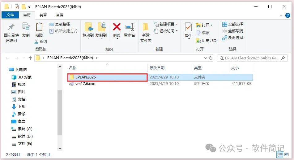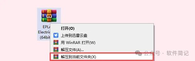 1.解压安装包:鼠标右击【EPLAN Electric2025(64bit)】压缩包选择解压到当前文件夹 2.打开解压后的文件夹,鼠标右击【EPLAN2025】文件夹选择【复制或剪切】。